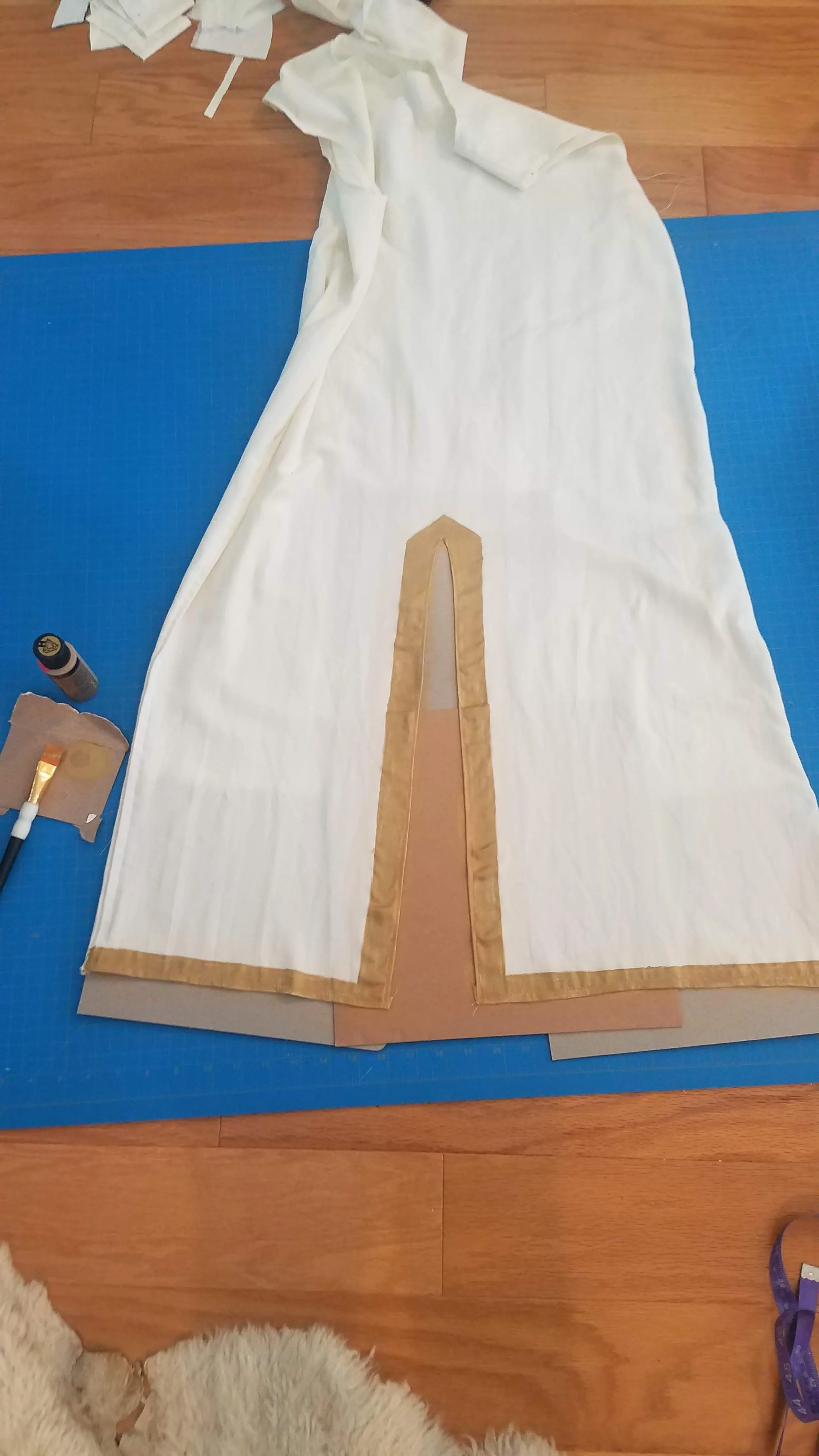 At this point, I realized I forgot that King Arthur has a gold hem so I painted the hem with gold acrylic paint and waited for it to dry before turning it over and painting the back hem.