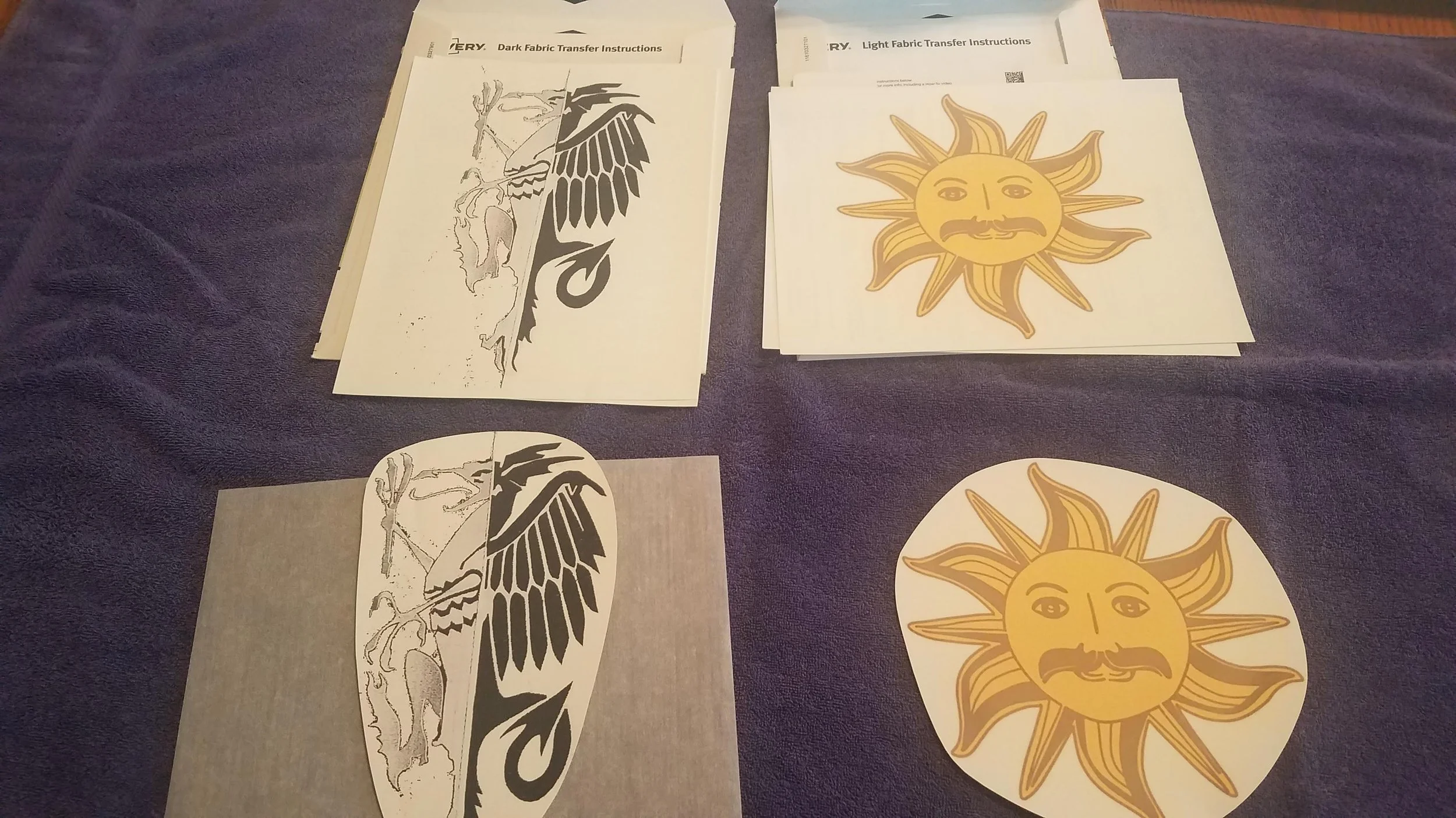 Krista and I also realized our “artistic skills” were not up to the challenge of painting the sigils on our tunics so my mom suggested I use iron-on transfer paper instead. We were able to find some on Amazon that would arrive the next day and even though it was more expensive, I was able to return the fabric paint I bought at Joann’s to offset the cost.